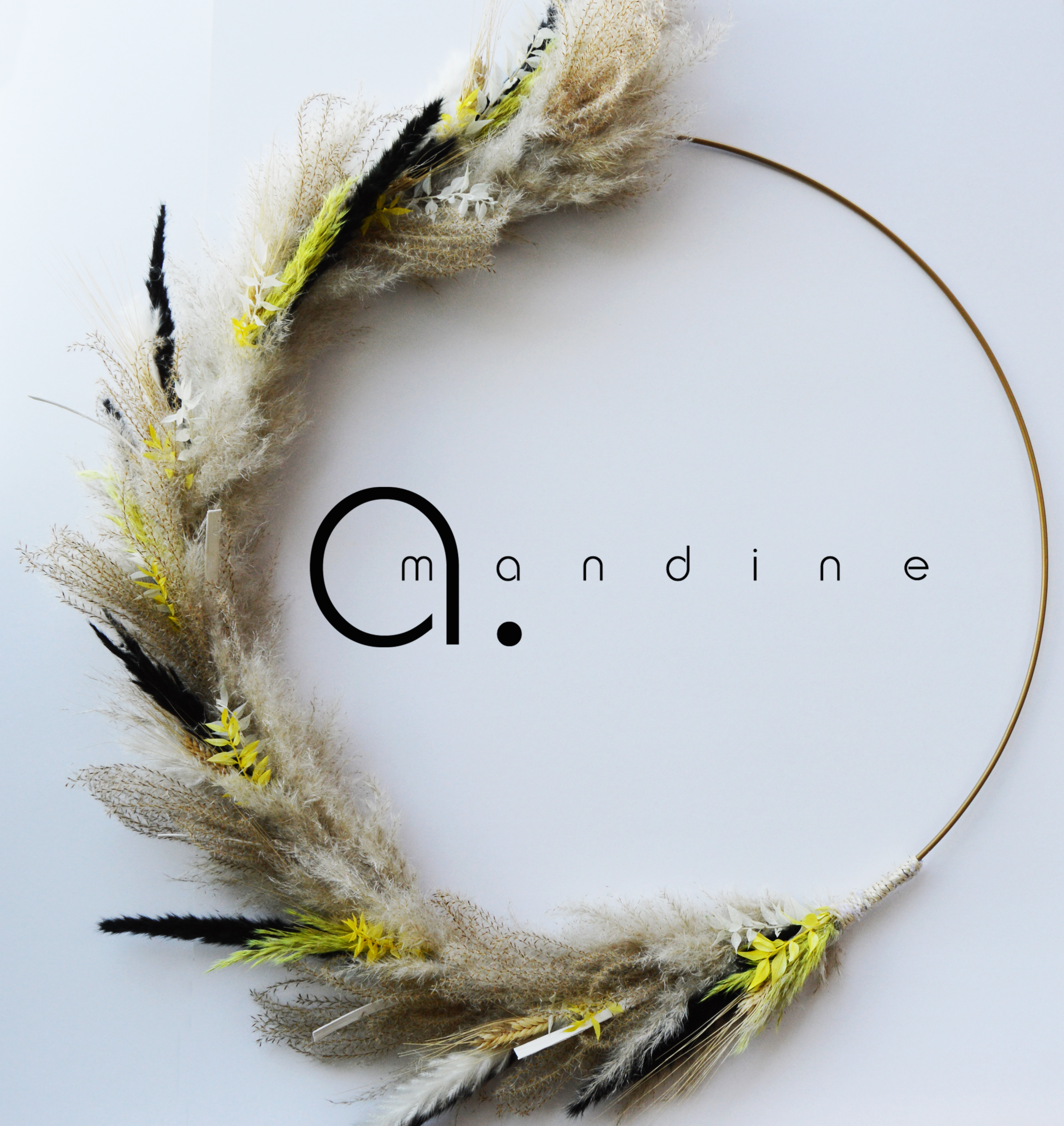 Cerceau en métal doré Ø 65cm orné de fleurs séchées dans les tons jaune/noir (*)
