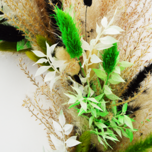 Afin de conserver au mieux les fleurs séchées, il est conseillé de la disposer loin d’une source de chaleur, d’éviter la lumière directe et l’humidité. Cela pourrait altérer la qualité et les couleurs de la composition.